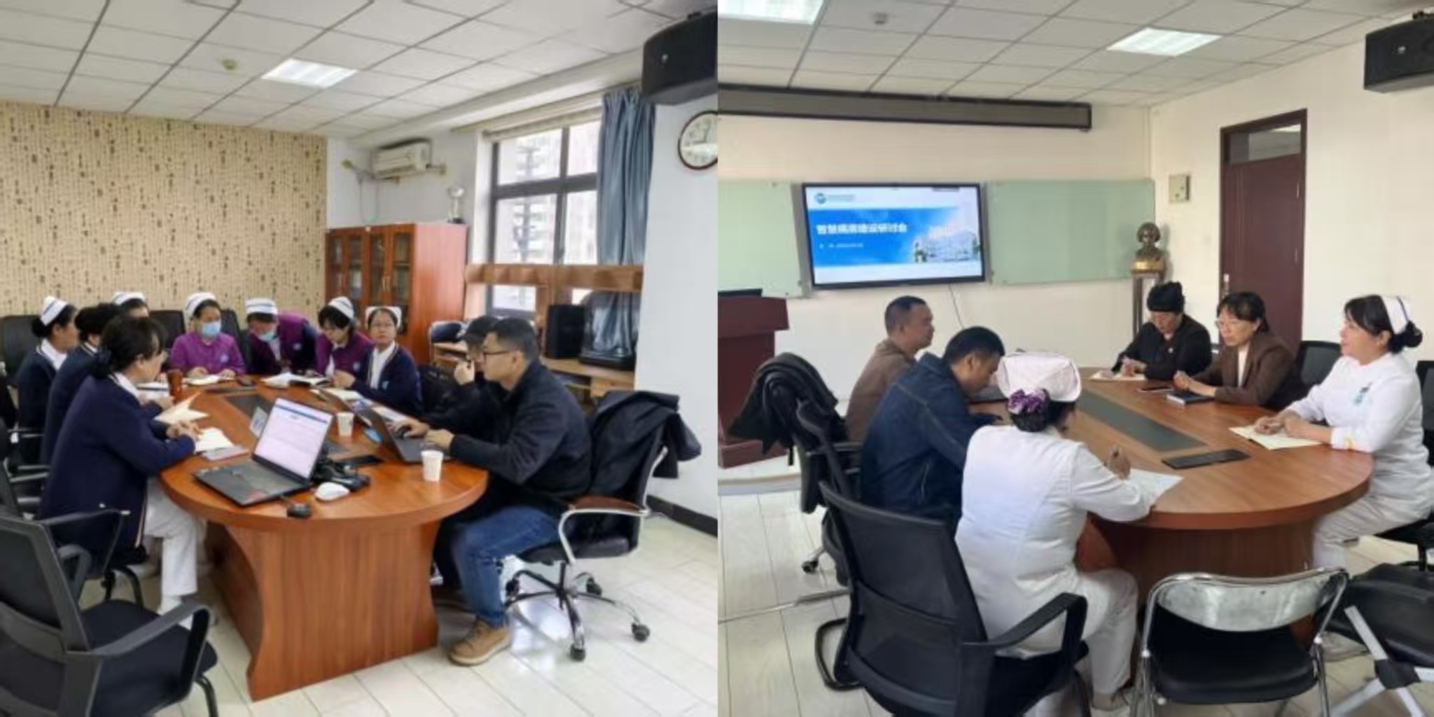 护理部定期组织召开工作会议,复盘工作成效、优化推进进程,开展临床科室信息化使用情况调查,确保信息系统建设贴合实际需求;全年累计举办各类信息化推进会24次,其中移动护理与护理管理信息化推进会14次、“全院一张床”信息化推进会4次、智慧病房建设推进会2次,通过与数智处负责人、信息工程师面对面沟通,及时解决系统上线过程中的各类问题,厘清阶段性工作任务清单。